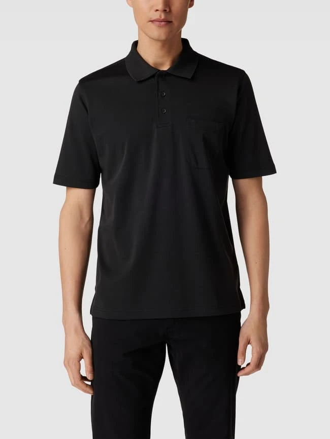 Christian Berg Men Poloshirt Mit Kurzer Knopfleiste Und Logo-Stickerei – Schwarz